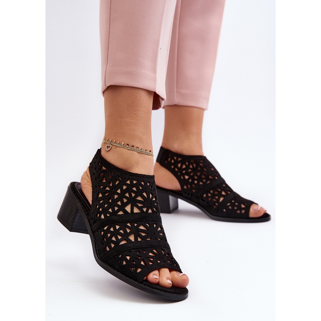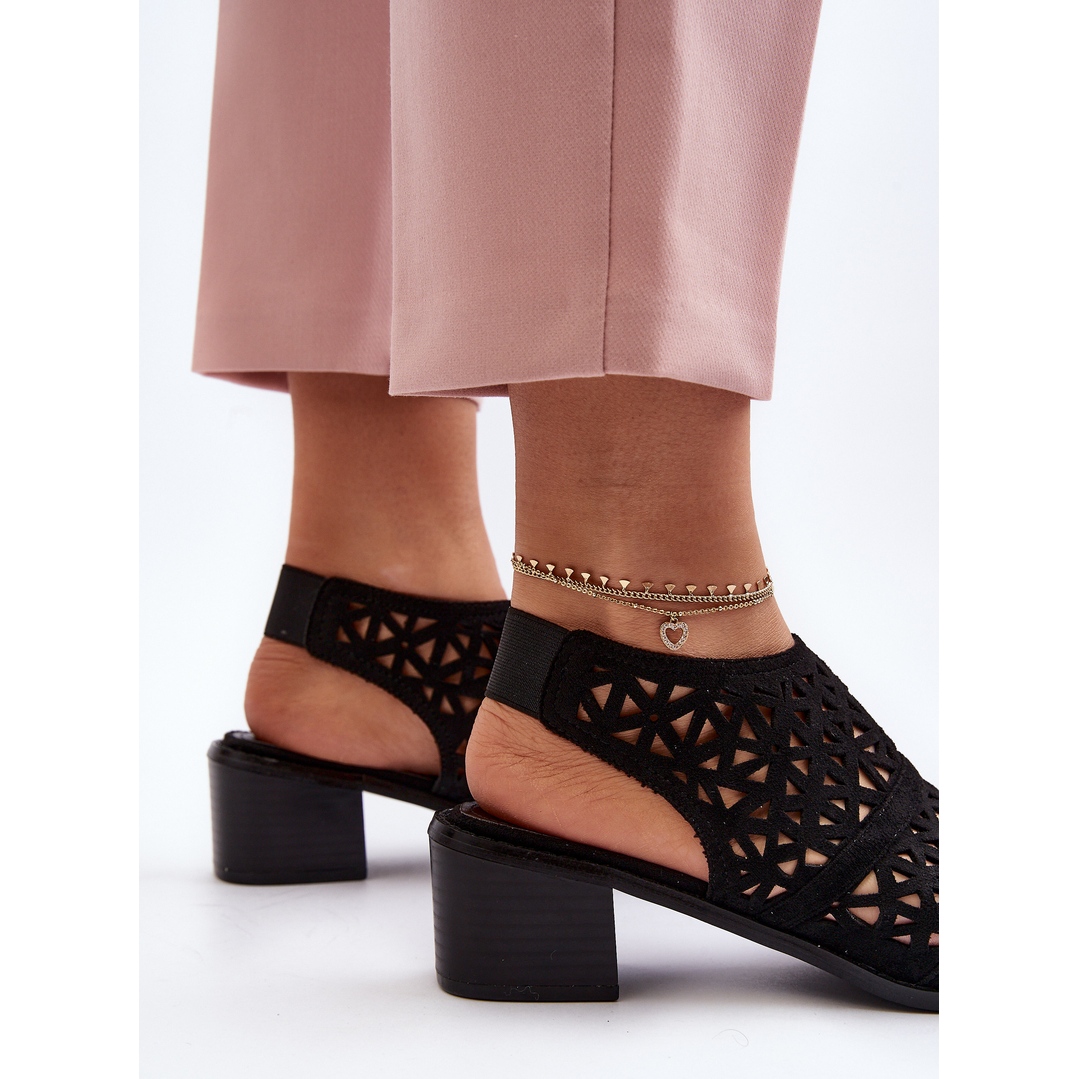 ** Simțiți-vă în frumoasele sandale cu toc Serapina negre, ajurate**