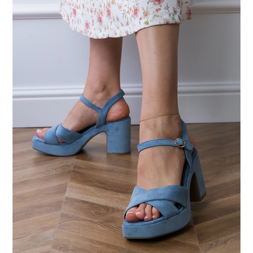Aceste sandale clasice se disting printr -o nuanță frumoasă de albastru, care va sublinia fantastic atât stilizări casual, cât și mai sofisticate. Înălțimea călcâiului de 9,5 cm oferă o ridicare excelentă, iar un post solid garantează stabilitatea la purtare. Nasul rotund adaugă ușurință, iar fixarea cataramei permite o potrivire perfectă a piciorului.