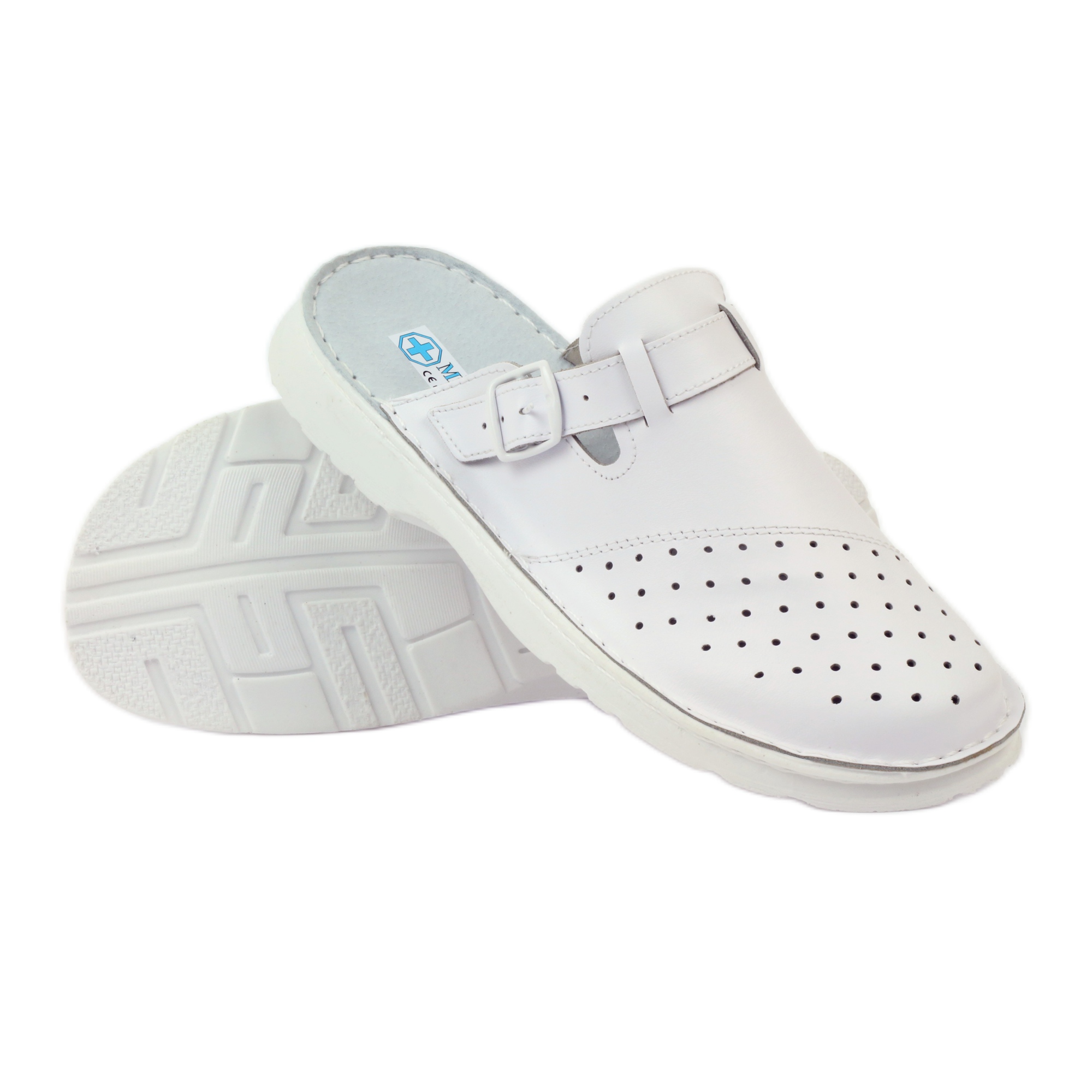 Vă oferim Sandalele Medicale 1055 într-o culoare albă elegantă, care nu numai că arată grozav, dar oferă și confort și susținere pentru picioare. Fabricate din piele naturală, de înaltă calitate, aceste șlapi combină stilul cu funcționalitatea, făcându-le o alegere ideală pentru personalul medical și pentru persoanele care apreciază confortul de zi cu zi.