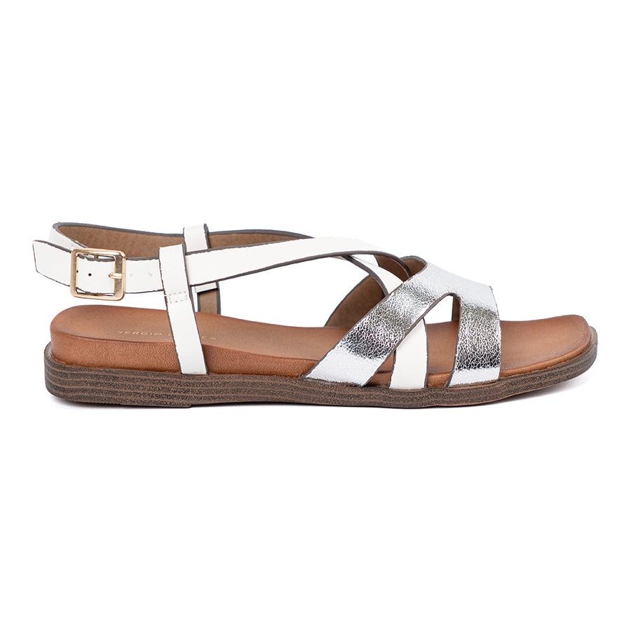 Descoperiți vara cu clasă și confort datorită sandalelor albe plate Sergio Leone! Aceste sandale elegante pentru femei combină o tăietură clasică cu un design modern, ceea ce le face alegerea perfectă în zilele calde. Datorită nutrețului deschis și lipsei nasului, picioarele tale vor câștiga o ventilație excelentă, ceea ce îți va oferi confort chiar și în cele mai tari zile de vară.