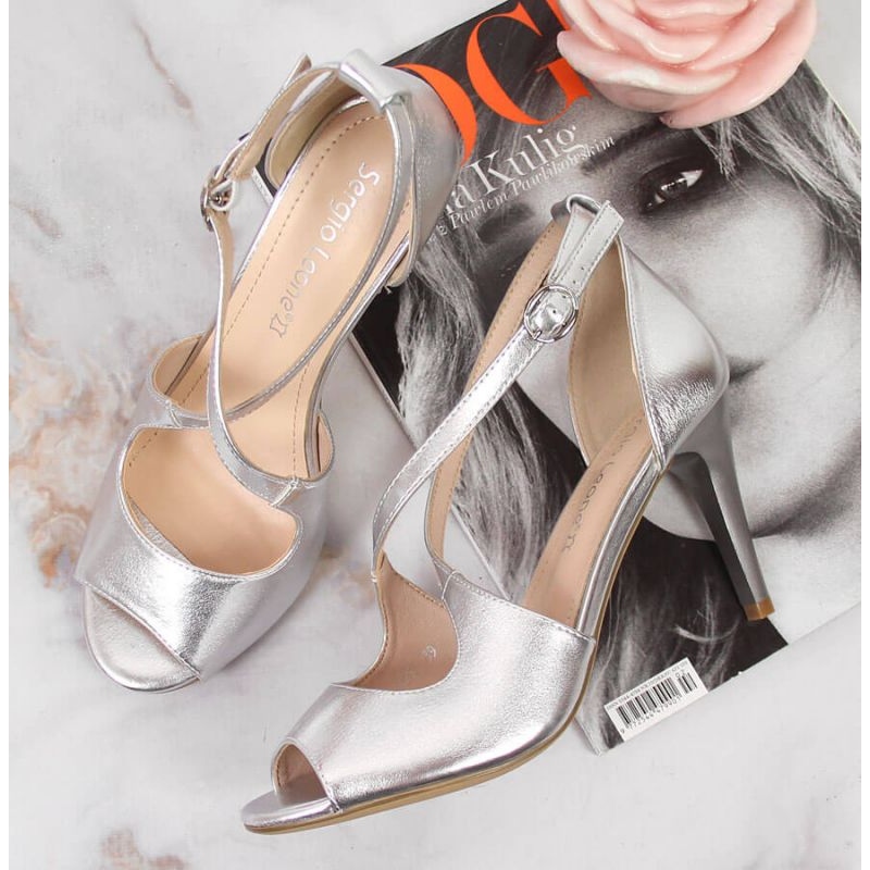 Detalii: Sandale argintii cu toc inalt W Sergio Leone