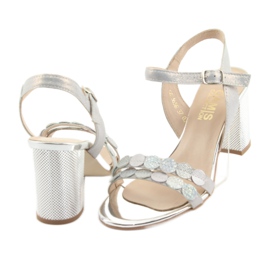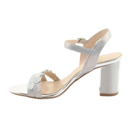 Sandalele argintii Gamis 3658 se caracterizează printr-un design clasic, fără vârf, ceea ce le face extrem de versatile și ușor de combinat cu diverse haine. Închiderea cu cataramă asigură stabilitate și o potrivire perfectă, iar detaliile lor metalice vor adăuga un pic de strălucire oricărui stil.