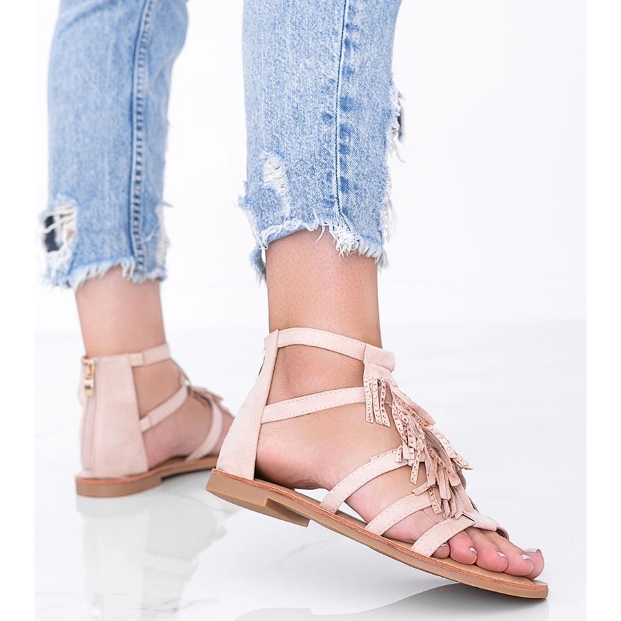 Sandalele combină confortul (talpă plană, inserție moale) cu un detaliu la modă sub formă de franjuri și zirconiu, ceea ce le face atât practice, cât și eficiente. Culorile naturale, bej, se amestecă cu ușurință cu multe stiluri, iar castelul din spate asigură confortul de a purta.
