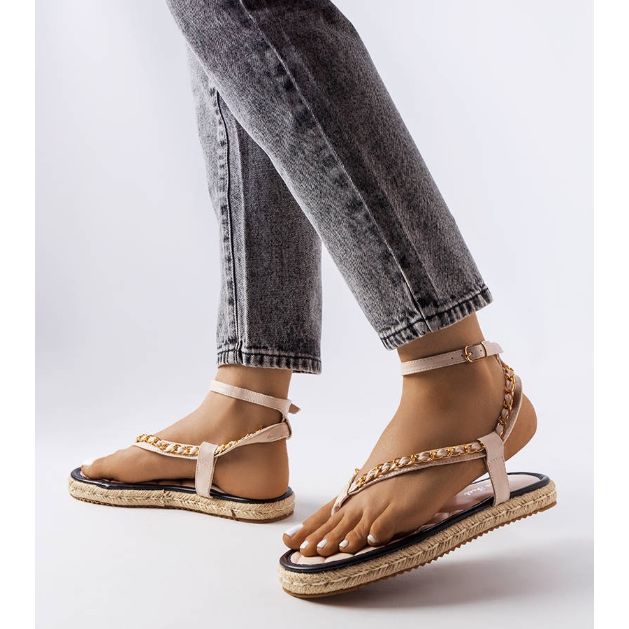 Sandale bej varieur cu un lanț decorativ - elegant, ușor și confortabil