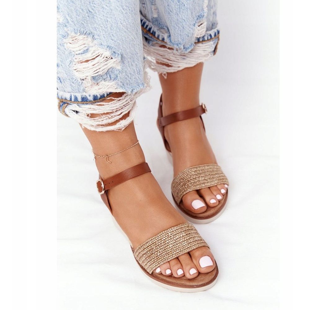 Detalii: EVE Sandale bej pe un toc cu pană cu împletituri în Tenerife maro
