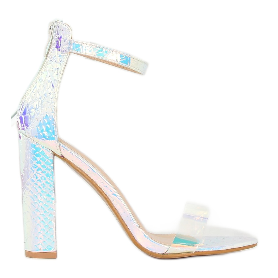 Va prezentam uimitoarele sandale BD344 de culoare argintie, care cu siguranta vor atrage atentia datorita finisajului lor original, holografic. Acești pantofi eleganti cu toc înalt de 10,5 cm sunt completarea perfectă oricărui stil, adăugându-i o strălucire unică.