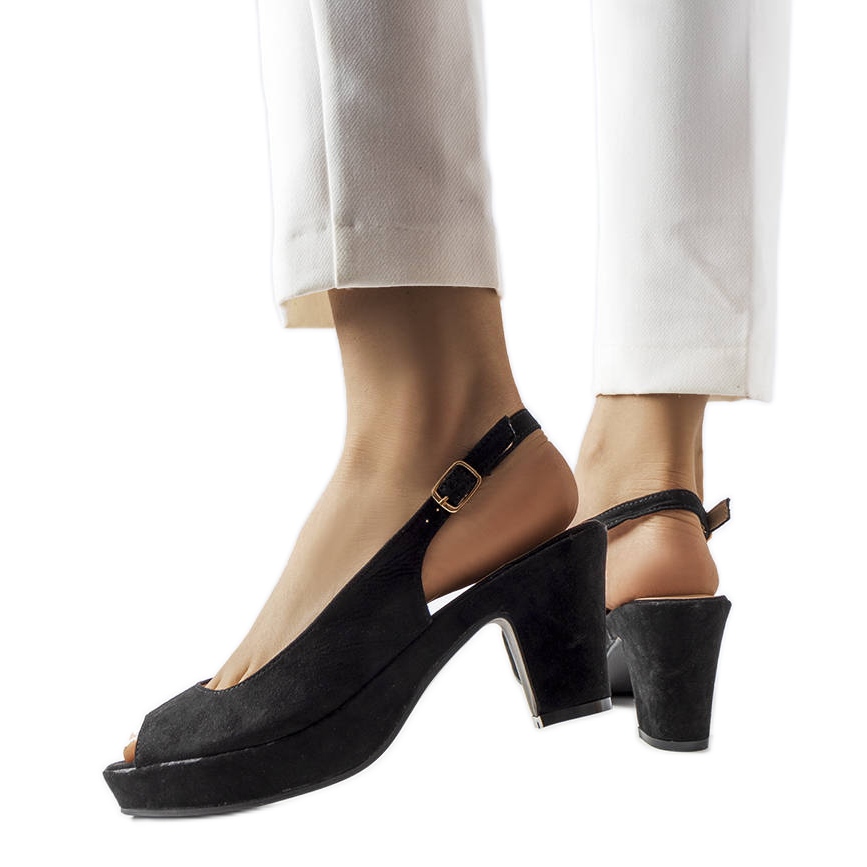 Sandalele negre de pe Dionne Post combină o formă clasică cu minimalismul modern. Fabricat din piele de căprioară și eco -ecologică, cu o inserție ecologică confortabilă din piele și o talpă de plastic durabilă. Calcul înalt de 7 cm oferă un anumit pas, iar catarama reglabilă permite o potrivire perfectă.
