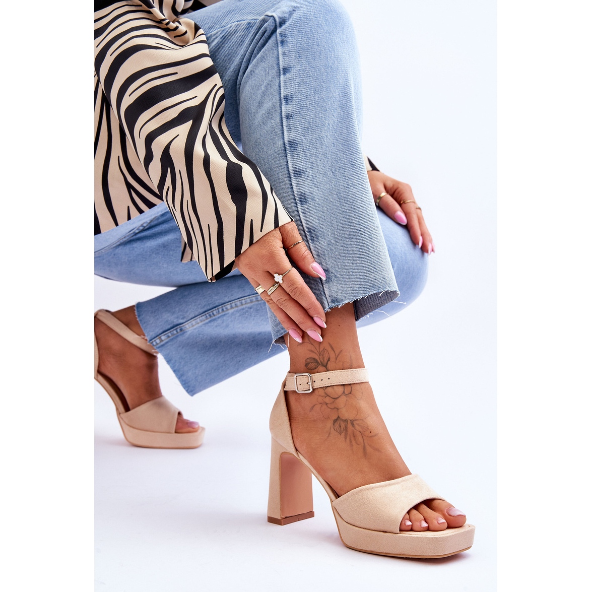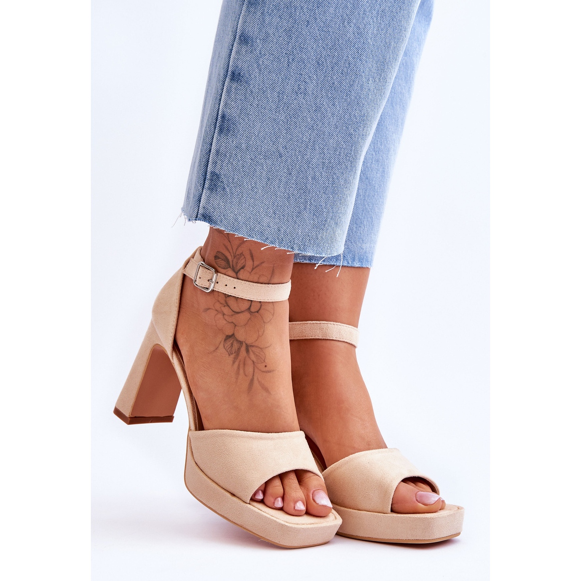 Sandale elegante, atemporale, din piele eco-parte moale într-o nuanță universală bej. Set pe un post stabil de 9 cm înalt, cu un călcâi rigidizat și o centură reglabilă cu o cataramă, acestea combină confortul cu eleganța feminină. Nasul descoperit, pătrat și tăierea minimalistă fac ca modelul să se potrivească atât cu stilizările de zi cu zi de vară, cât și cu ocazii mai formale.