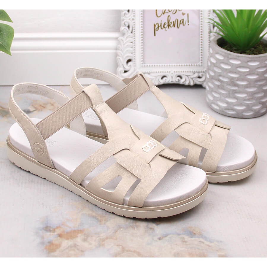 Detalii: Sandale confortabile de damă cu slip-on cu elastic ecru Rieker V5052-80 bej