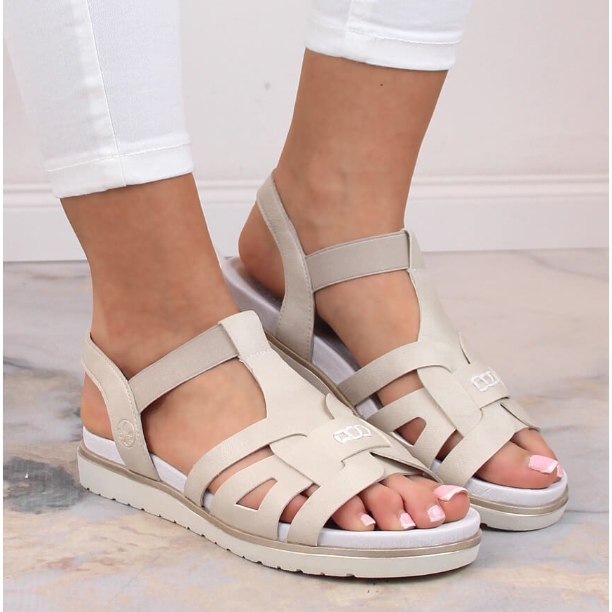 Rieker Sandale confortabile de damă cu slip-on cu elastic ecru Rieker V5052-80 bej