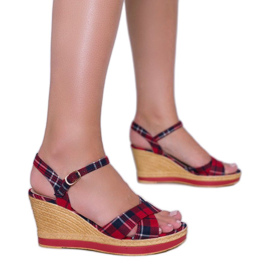 Vă prezentăm sandalele cu pană în carouri roșii de la You Bebe - alegerea perfectă pentru fiecare femeie la modă care dorește să îmbine confortul cu eleganța. Aceste sandale frumoase se caracterizează printr-o croială clasică și un model în carouri atemporal care este mereu în tendințe.