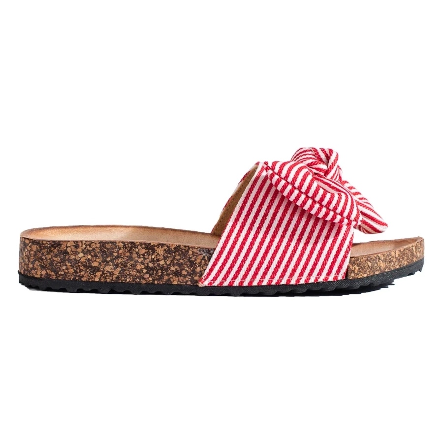 O propunere ușoară și elegantă pentru primăvară și vară de la brandul Vinceza. Flip -flops cu dungi albe cu un arc subtil combină confortul încălțămintei zilnice cu un accent la modă, marinar. Perfect pentru o plimbare, cumpărături sau ieșiri de vacanță.