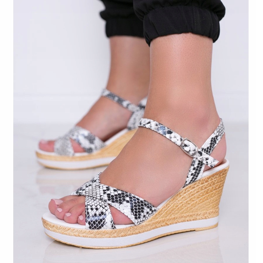 Detalii: Sandale cu pană albă în modelul pielii de șarpe Peekaboo