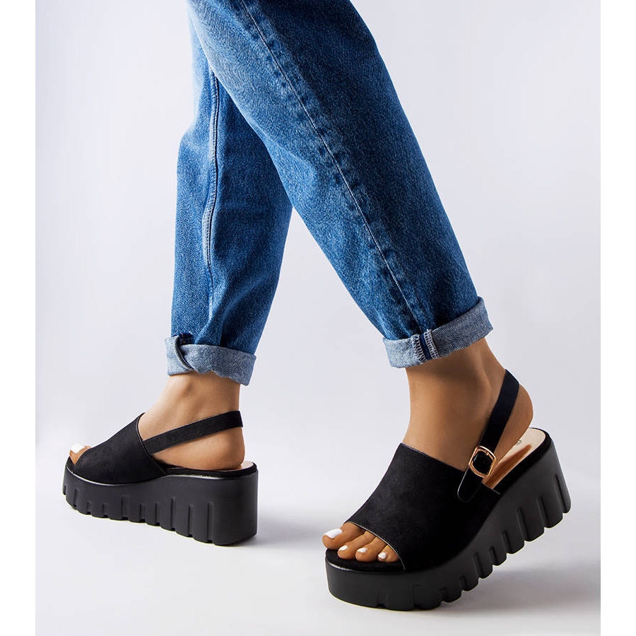 Confectionate din piele intoarsa ecologica de inalta calitate, aceste sandale cu pana nu numai ca ofera durabilitate, dar isi pastreaza si aspectul elegant pentru o perioada indelungata. Talpa din cauciuc negru este robustă și flexibilă, oferind tracțiune și siguranță la fiecare pas. Designul fara modele suplimentare in negru clasic este atemporal si usor de asortat cu orice tip de garderoba, ceea ce face ca acest model sa fie extrem de universal.
