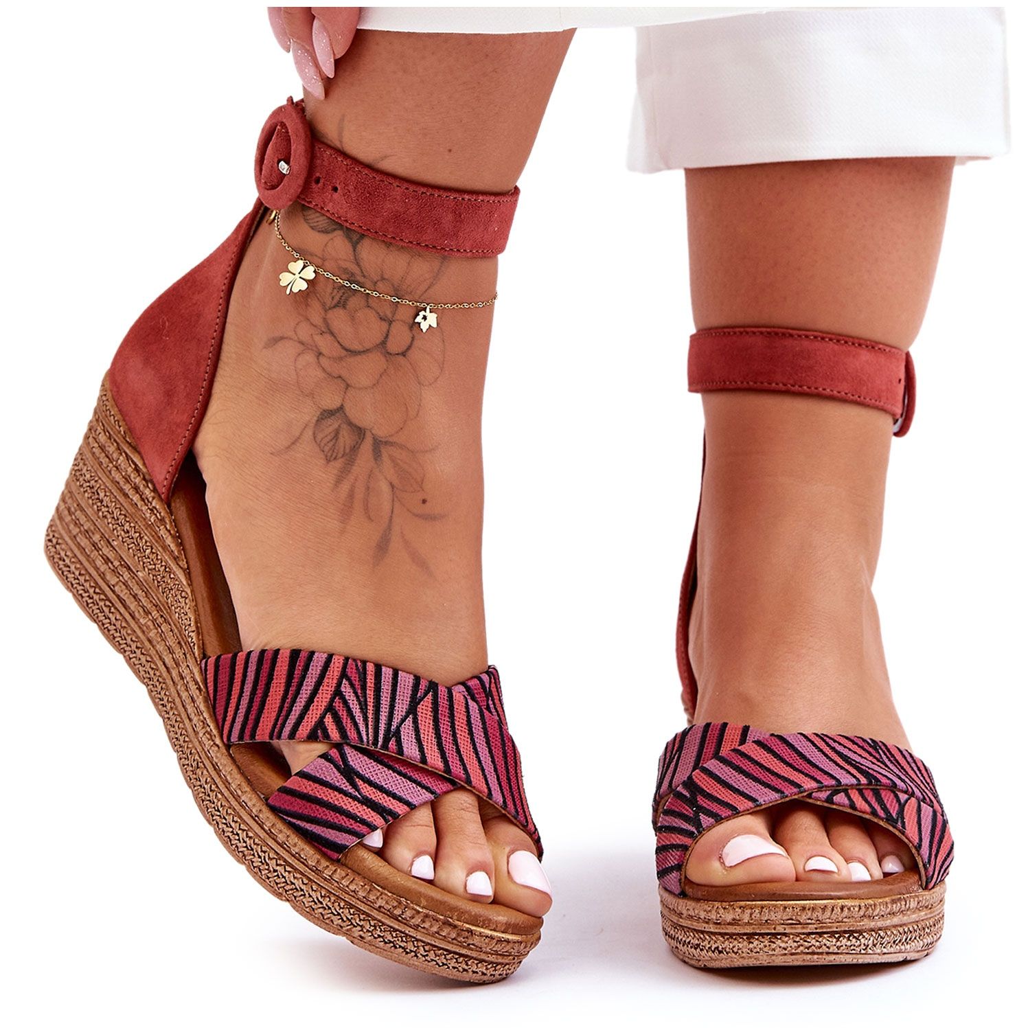 Sandale din piele de căprioară pe Wedge Maciejka 04565-44-Red