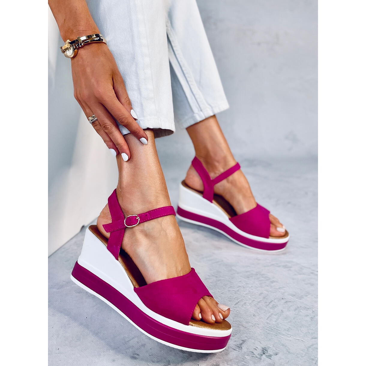 Detalii: Sandale cu pană Dirado Fuchsia roz