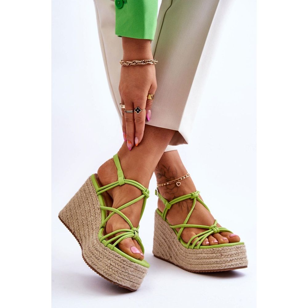 Detalii: Sandale cu pană la modă cu împletitură verde Nessia