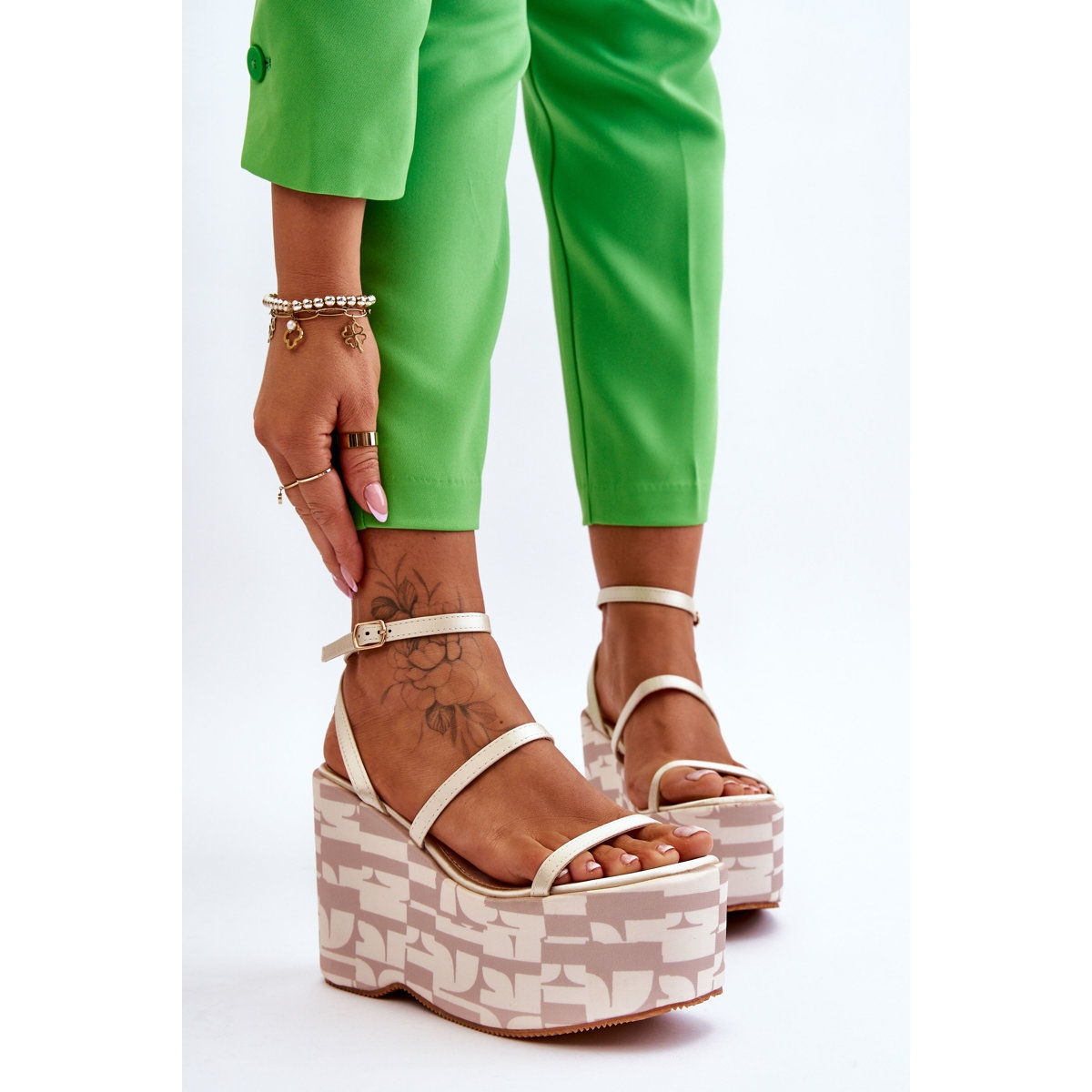 Înălțimea tocului de 12 cm și înălțimea platformei de 7,5 cm adaugă farmec siluetei și o lungesc optic. Perfect pentru purtarea de zi cu zi și pentru diverse ocazii - de la întâlniri sociale la petreceri de vară.