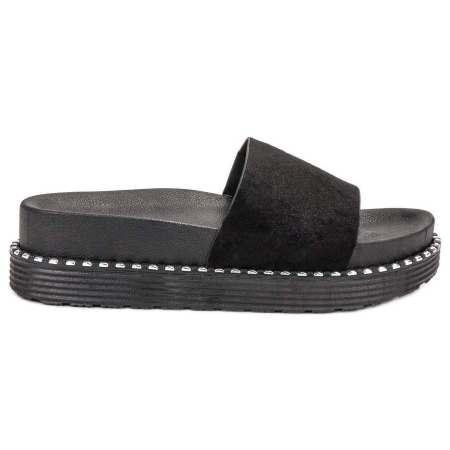 Accentul stilat sub formă de strasuri și știfturi le conferă un caracter la modă, lejer, care se potrivește perfect tendințelor sezonului primăvară/vară. Acești șlapi vor merge perfect atât cu blugii, cât și cu rochii sau fuste vaporoase, ceea ce le face un articol universal de garderobă.