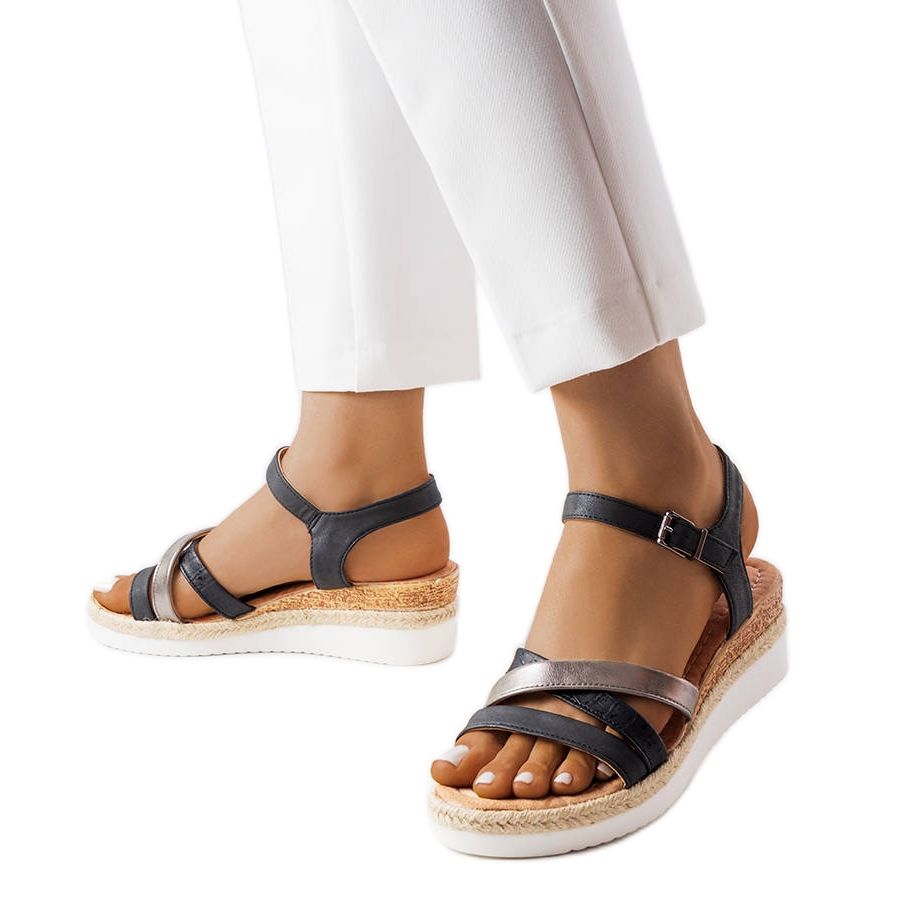 Detalii: Sandale cu pană negre de la Ridenour negru