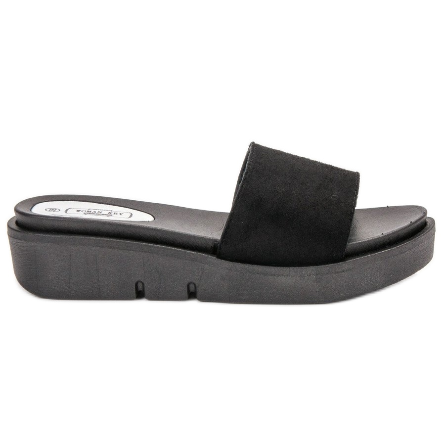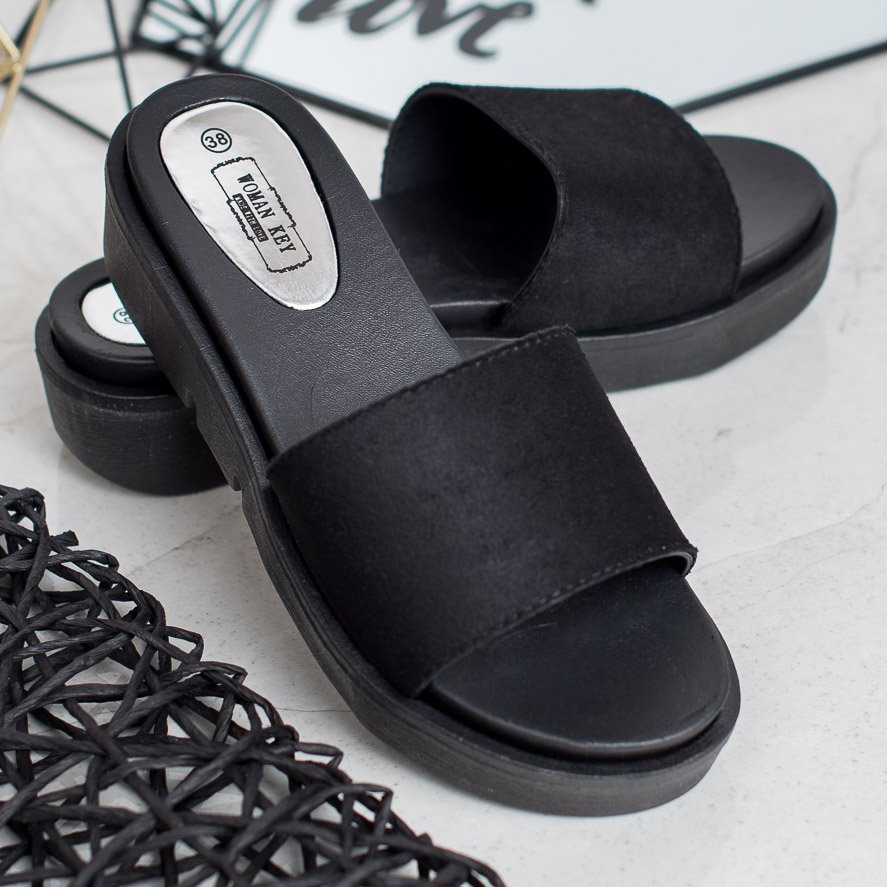 Șlapii din materiale de înaltă calitate captivează prin stilul lor minimalist, clasic, iar talpa călcată asigură aderență și stabilitate adecvate. Înălțimea penei de 5 cm și platforma de 3 cm adaugă un farmec subtil fără a sacrifica confortul. Datorită tocului deschis și designului slip-on, punerea și scoaterea șlapilor este extrem de rapidă și convenabilă.