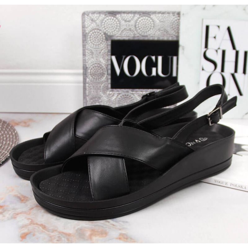 Sandalele cu pană Vinceza W JAN117A de culoare neagră sunt o alegere perfectă pentru femeile care doresc să îmbine confortul cu eleganța. Sunt perfecte pentru zilele de vară, atât pe plajă, cât și la plimbările în oraș.