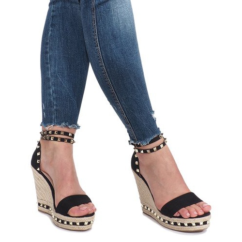 Detalii: Sandale cu pene negre cu știfturi Lov'it negru