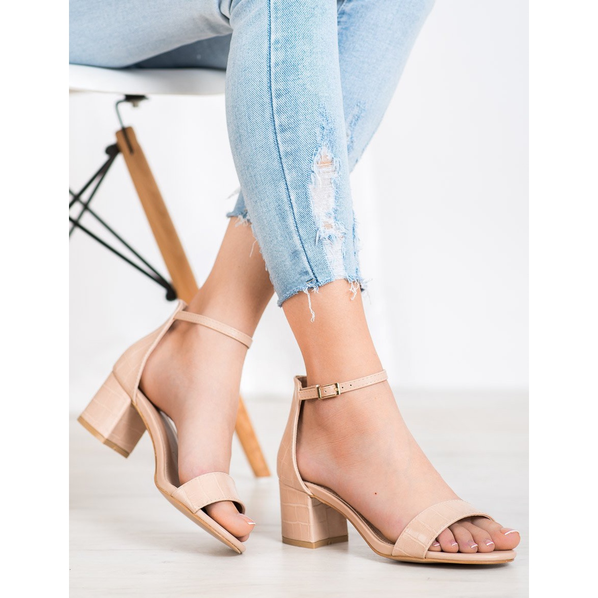 Sandalele Seastar se caracterizează prin vârfuri deschise și un toc încorporat, care asigură nu doar un aspect elegant, ci și confort la purtare. Cureaua superioară este realizată din material de înaltă calitate și se termină cu o cataramă aurie, care subliniază designul lor clasic. Tocul înalt de 6 cm sub formă de bloc garantează stabilitate și confort, perfect atât pentru ieșirile de seară, cât și pentru sărbători.