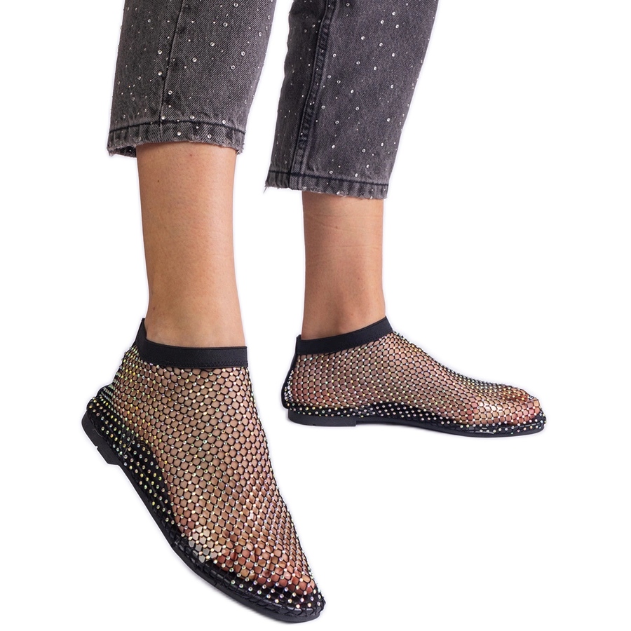 Inna marka Sandale cu plasă neagră cu zirconi negru