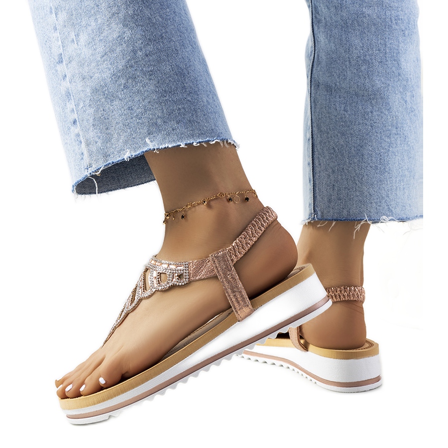 Frumoasa lor nuanta de roz Champagne si decoratiunile subtile sub forma de zirconi si strasuri le ofera o stralucire unica, asortandu-se perfect cu tinutele de vara. Inaltimea platformei de 3,5 cm asigura stabilitate si in acelasi timp alungeste optic picioarele.