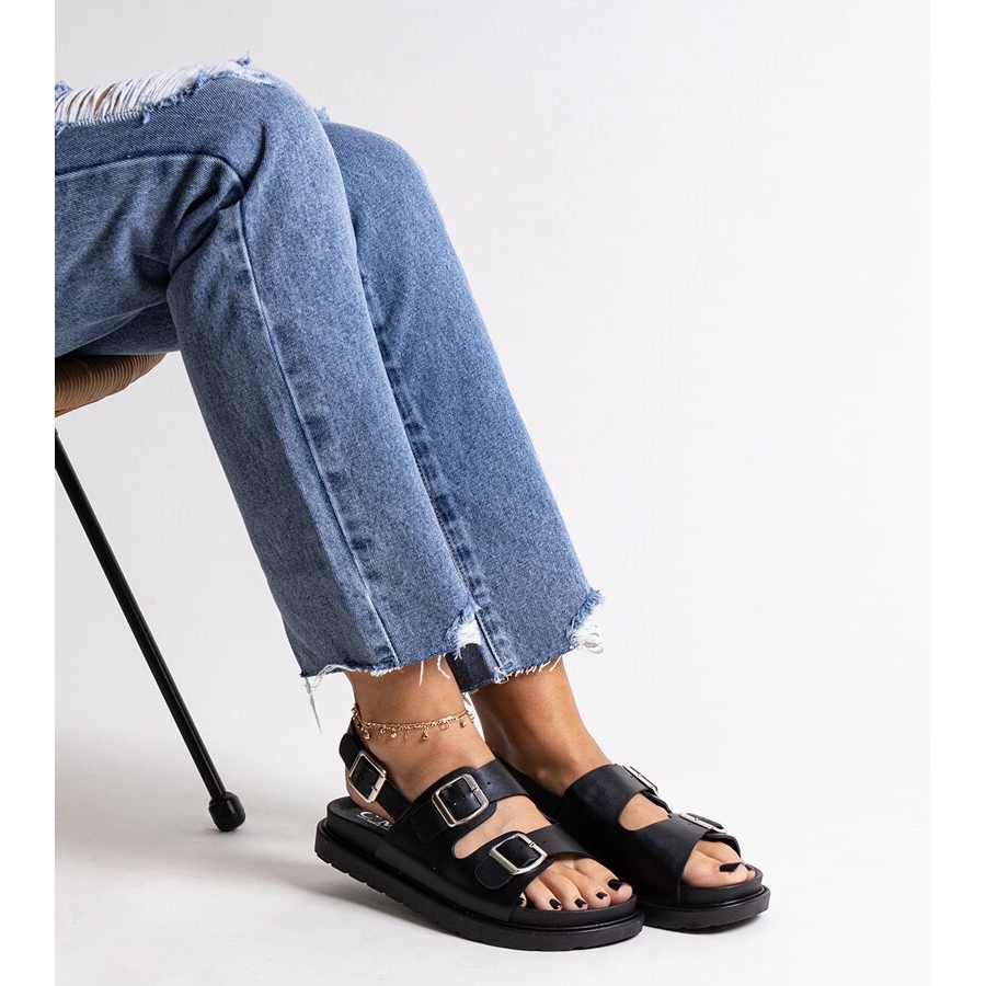 Sandalele negre de pe platforma Bashera sunt alegerea perfectă pentru zilele de vară, combinând designul și confortul modern. Datorită călcâiului plat, înălțime de 4 cm, purtarea acestora pentru multe ore este o plăcere pură. Catarama permite o potrivire ușoară și precisă a piciorului, ceea ce face ca aceste sandale să nu fie numai elegante, dar și funcționale.