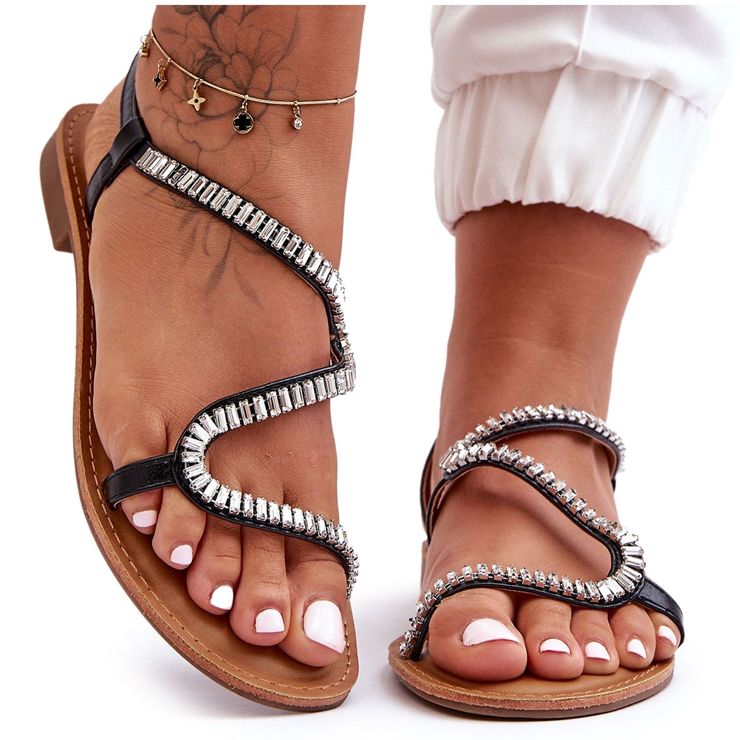 Sandale pentru femei cu decorațiuni cu Hayen - negru - negru