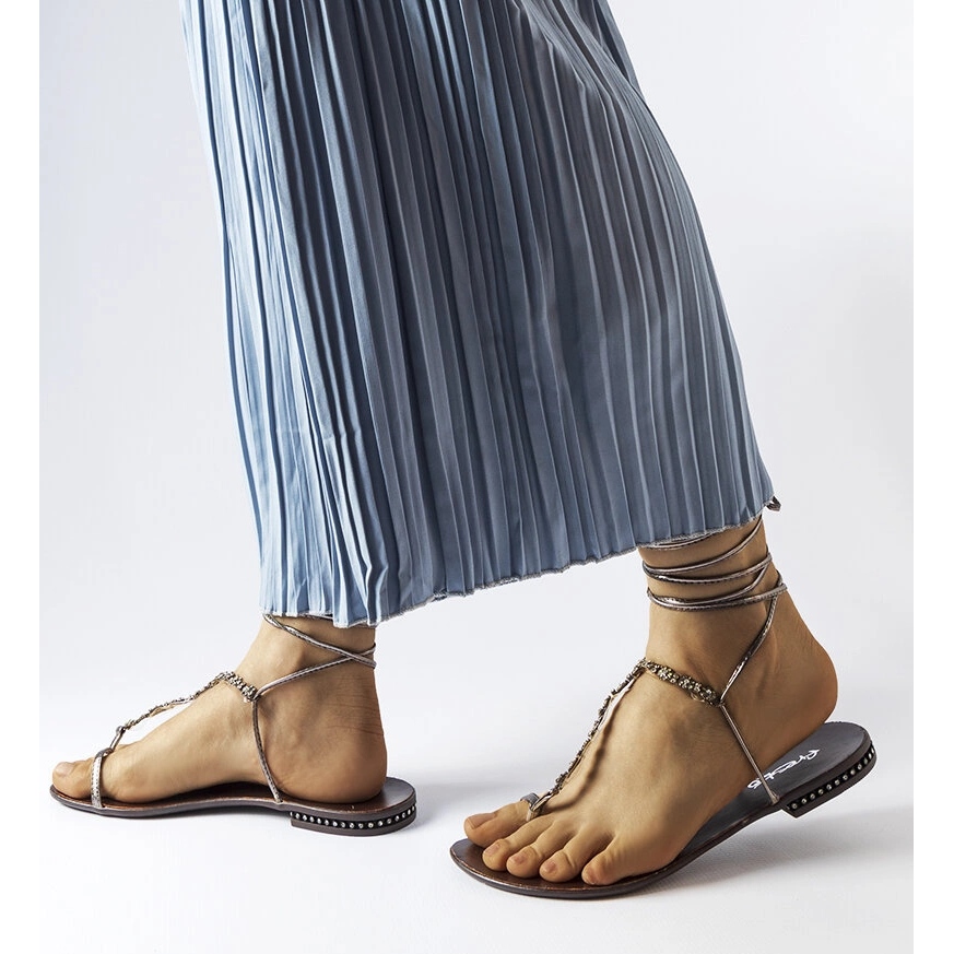 Sandale gri închis cu zirconii troghi - stil și confort pentru vară