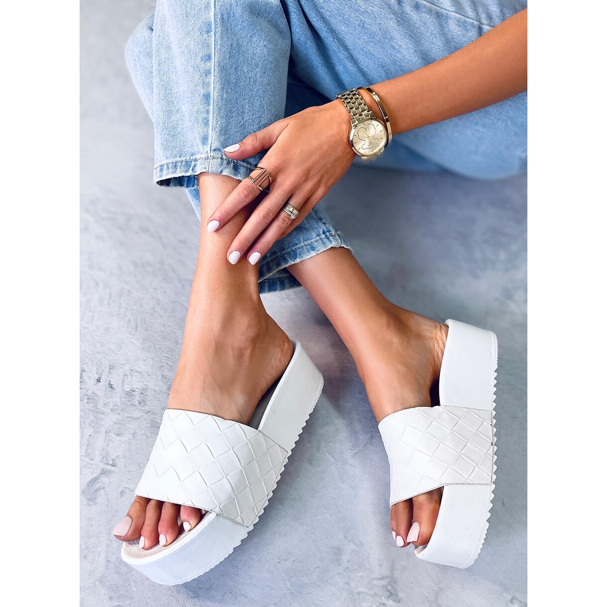 Elegant și confortabil - șlapi cu talpă înaltă PA1 Morlet White