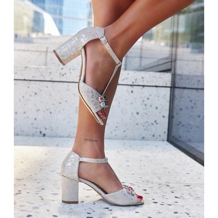 Tăierea lor clasică, îmbogățită cu o cataramă decorativă, le oferă un personaj unic, iar rinestonele delicate în culoarea aurie adaugă stil și strălucire. Postul înalt cu o înălțime de 6,5 cm face ca picioarele să pară mai subțiri și te vei simți încrezător și feminin, plutind deasupra solului.