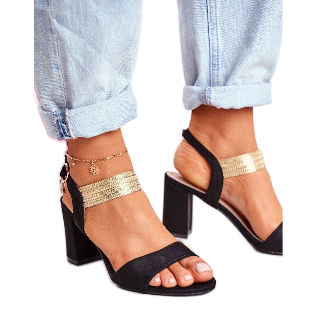 Detalii: Sandale cu toc înalt cu curea decorativă Neagră negru