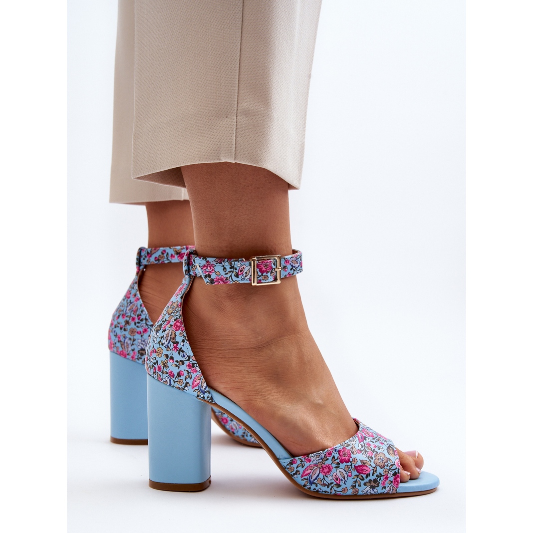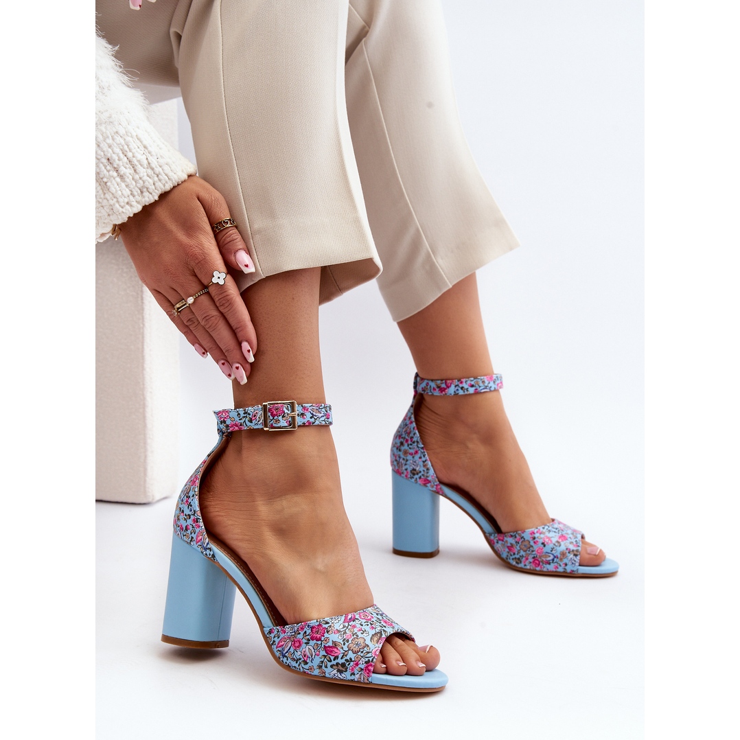 Detalii: Sandale cu toc inalt cu flori albastre Vitamella albastru