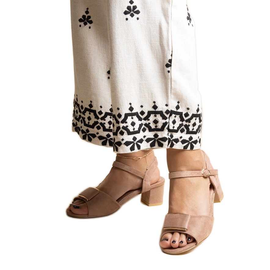 Sandalele bej întunecate de pe Postul Frederica scăzut este un must-have pentru zilele de vară care combină eleganța și confortul. Aceste sandale pentru femei, confecționate din piele de căprioară ecologică din piele de înaltă calitate, nu numai că arată frumos, dar asigură și confort pentru ore lungi. Tăierea lor clasică cu un călcâie joasă, cu o înălțime de 5 cm, le face alegerea perfectă atât pentru plimbările de zi cu zi în jurul orașului, cât și pentru ieșirile de seară.