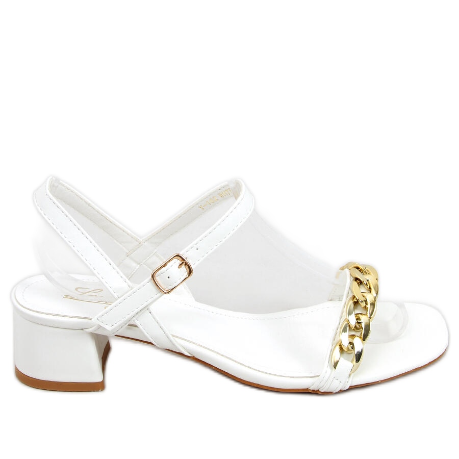 Descoperiți eleganța și confortul cu sandalele cu toc mic Daphne White în alb! Aceste sandale de damă din bob întreg combină o croială clasică și cele mai la modă accente, precum lanțurile elegante, ceea ce le face o alegere ideală pentru diverse ocazii.