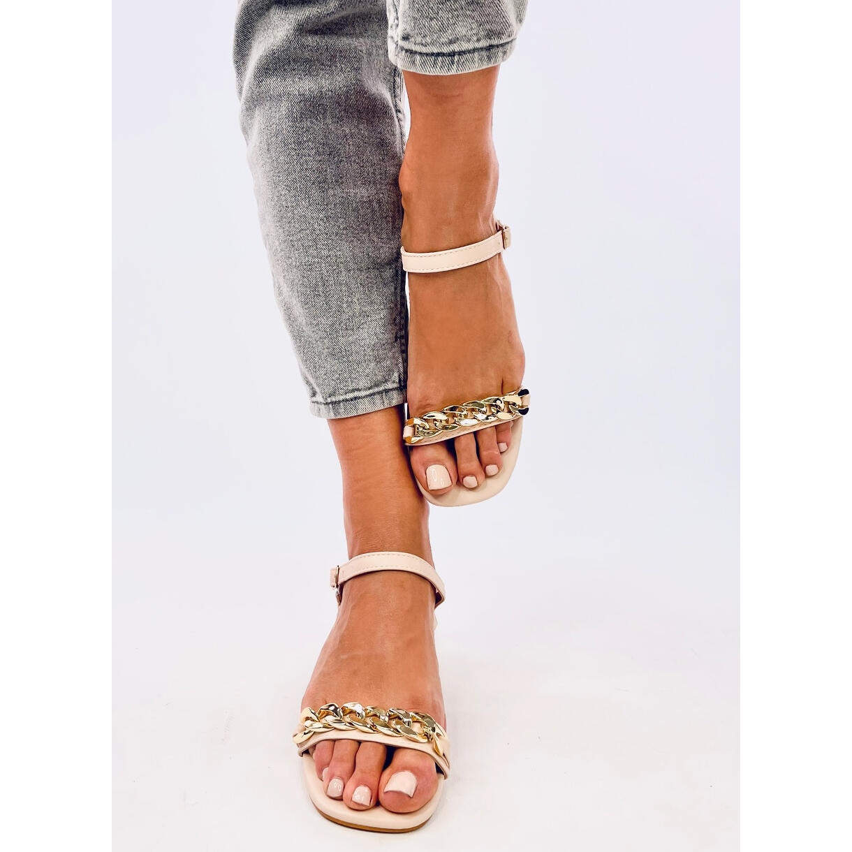 Sandalele disponibile într -o culoare bej elegantă se îmbină bine cu diverse stilizări, de la casual la mai elegant. Modelul lor neted le face extrem de universale și se vor încadra cu ușurință în orice garderobă.
