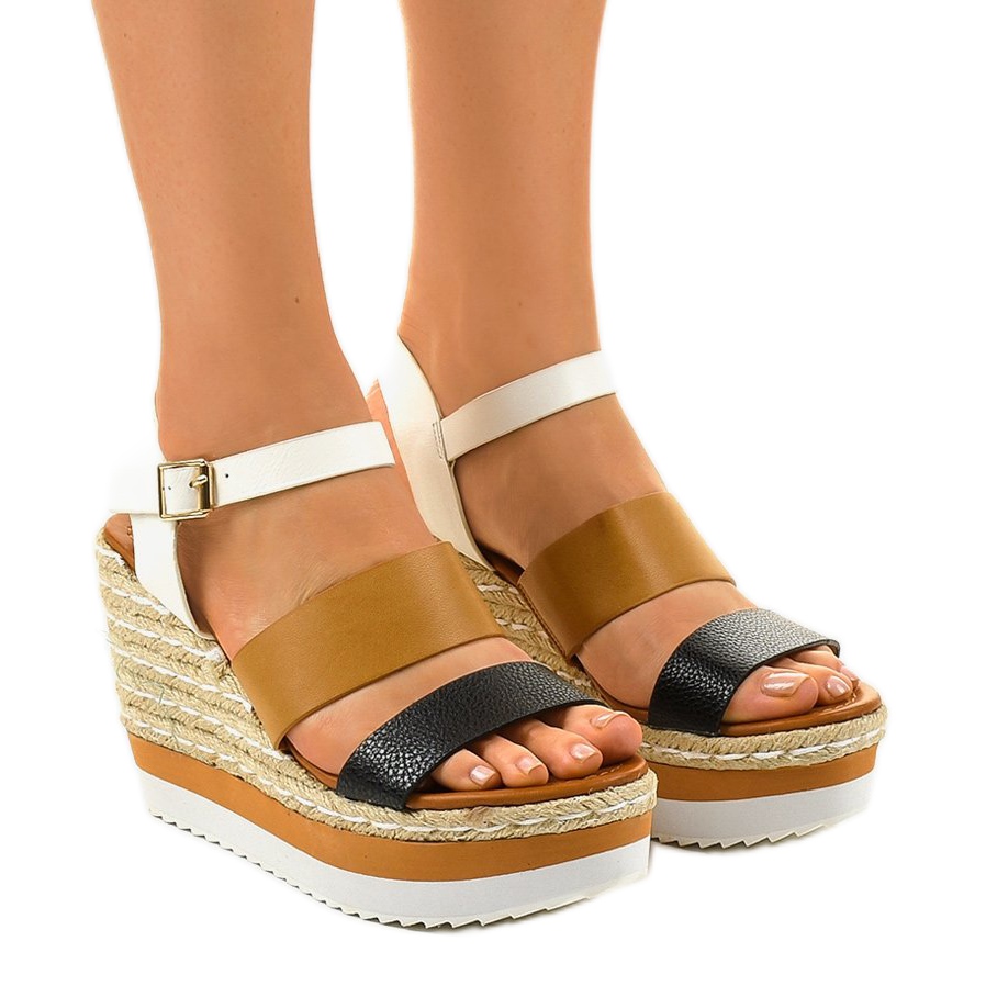 Inna marka Sandale cu toc negru, espadrile VB76062 alb maro multicolor