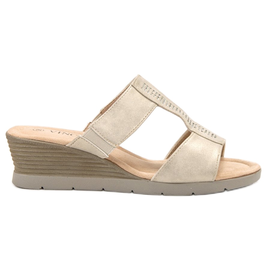 Șlapii VINCEZA se caracterizează printr-o manoperă de înaltă calitate - sunt realizate din materiale durabile care vor asigura longevitate și un aspect atractiv pentru multe sezoane. O înălțime a tocului de 5 cm și o înălțime a platformei de 3-5 cm fac ca acești pantofi să fie perfecti pentru cei care doresc să adauge ceva înălțime evitând tocurile înalte incomode.