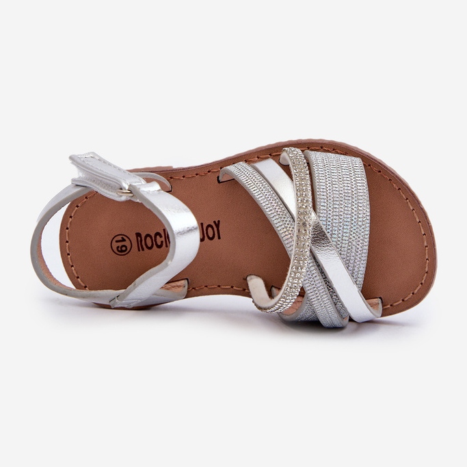 Detalii: Sandale cu velcro argintii strălucitoare pentru copii Delphina