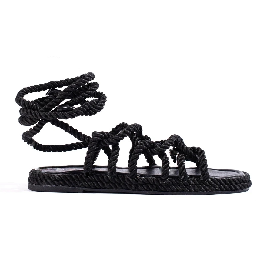 Sandale de pălmară legate pentru femei - negru - negru