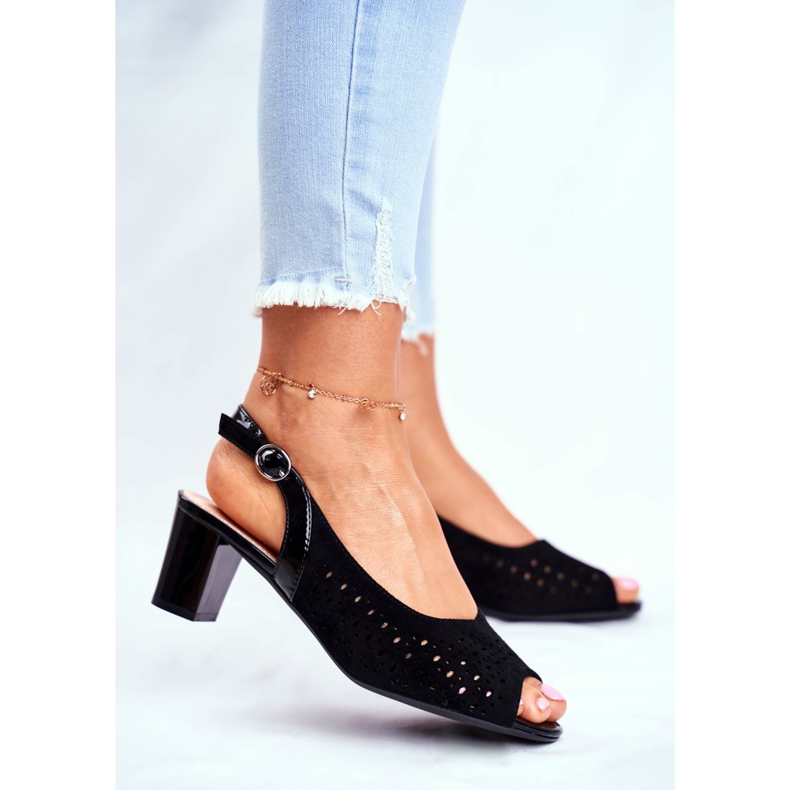 Descoperă eleganța și stilul cu sandalele de damă cu toc înalt Sergio Leone într-o culoare clasică neagră! Modelul SK832 este o combinație perfectă a unui model ajurat la modă cu inserții lăcuite care le conferă un caracter unic.