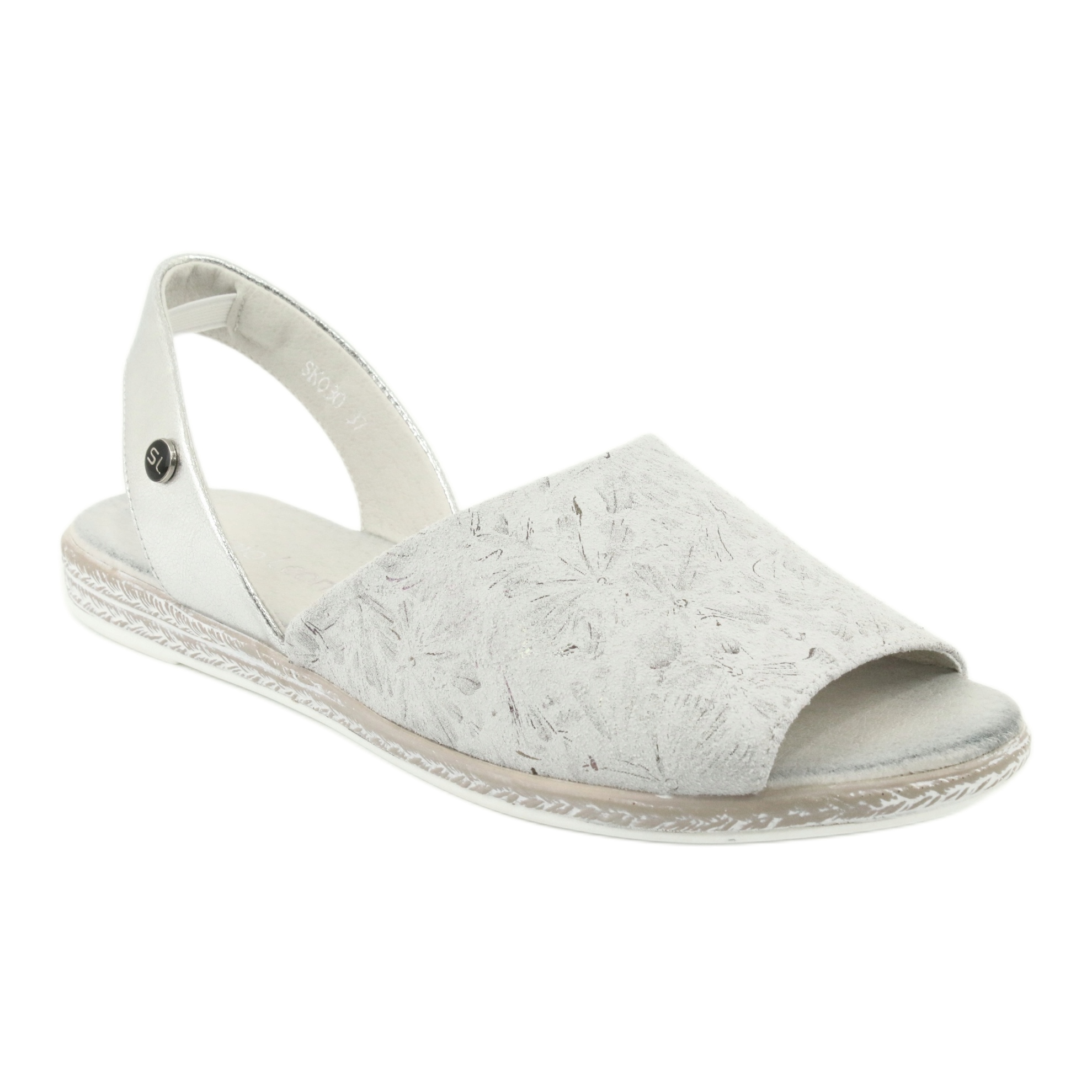 Designul clasic fără degete combinat cu culoarea delicată, gri-argintiu, face ca aceste sandale să fie extrem de universale - pot fi combinate atât cu rochii de vară, cât și cu pantaloni casual. Brantul din material ecologic garanteaza moliciune si confort, iar talpa sintetica este rezistenta si stabila pe orice suprafata.