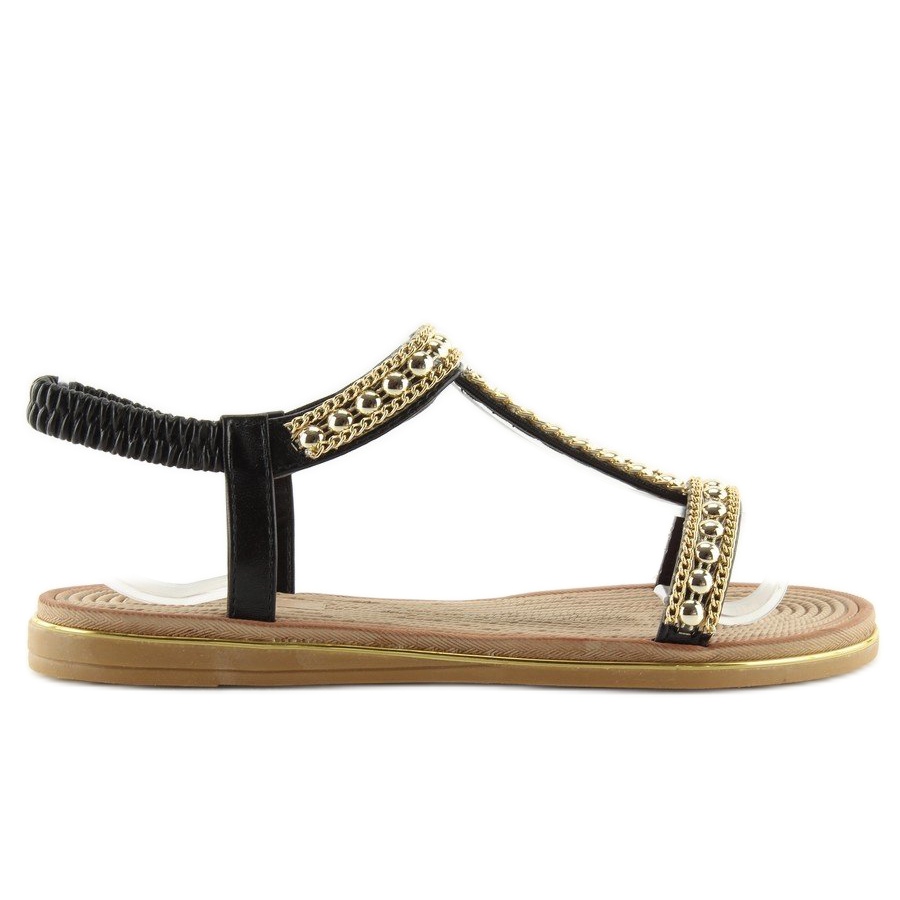 Pregătește-te pentru zilele de vară cu sandalele negre de damă S37-san Black! Aceste sandale elegante, cu o talpă plată și excepțional de moale, sunt alegerea perfectă pentru femeile care apreciază confortul și un aspect la modă. Croiala clasica combinata cu un decor elegant, stralucitor format din crampoane rotunde si elemente de lant face ca aceste sandale sa fie perfect in acord cu ultimele tendinte.