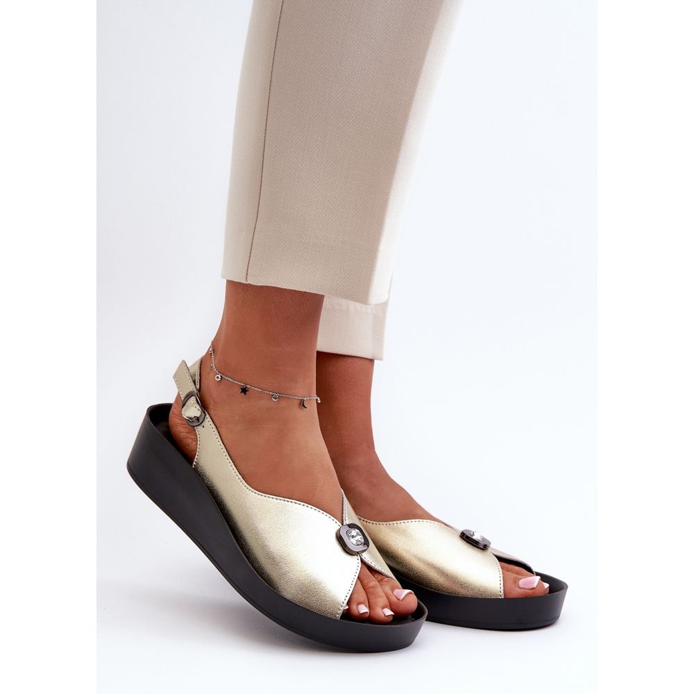Detalii: Sandale Damă Piele Pe Pană Și Platformă S.Barski KV27-020 Aur de aur