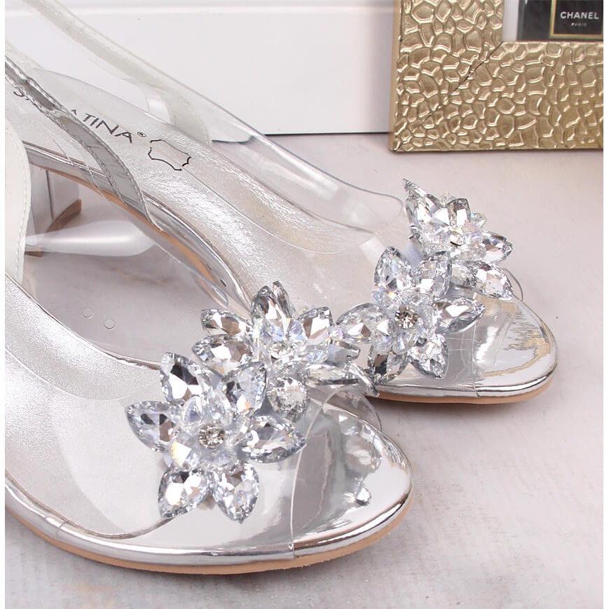 Detalii: Sandale dama transparente Sabatina 2014-600 argintiu cu zirconiu cubic