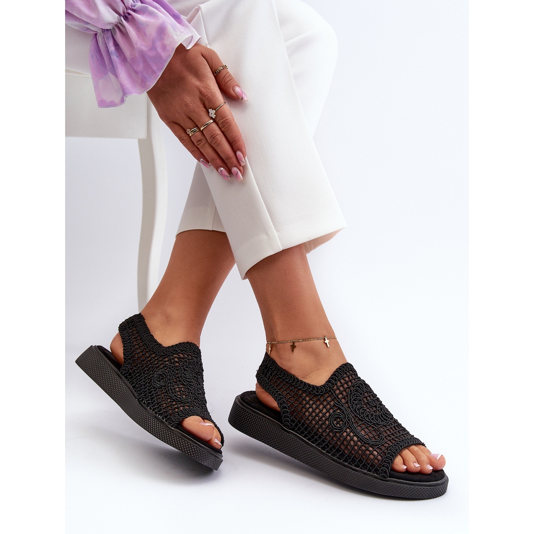Detalii: Sandale de damă ajurate pe Platformă Negru Mennita